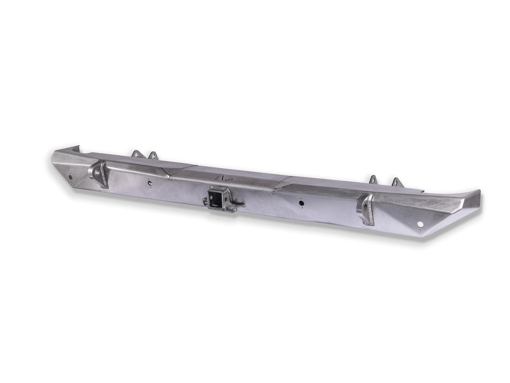 オフロード走行時にグラディエーターのリアバンパーが引きずりやすい傾向を解消し、純正や一般的な社外バンパーに比べて大幅にクリアランスを確保。テールゲートに密着し、地面から高く配置されたロープロファイル設計です。