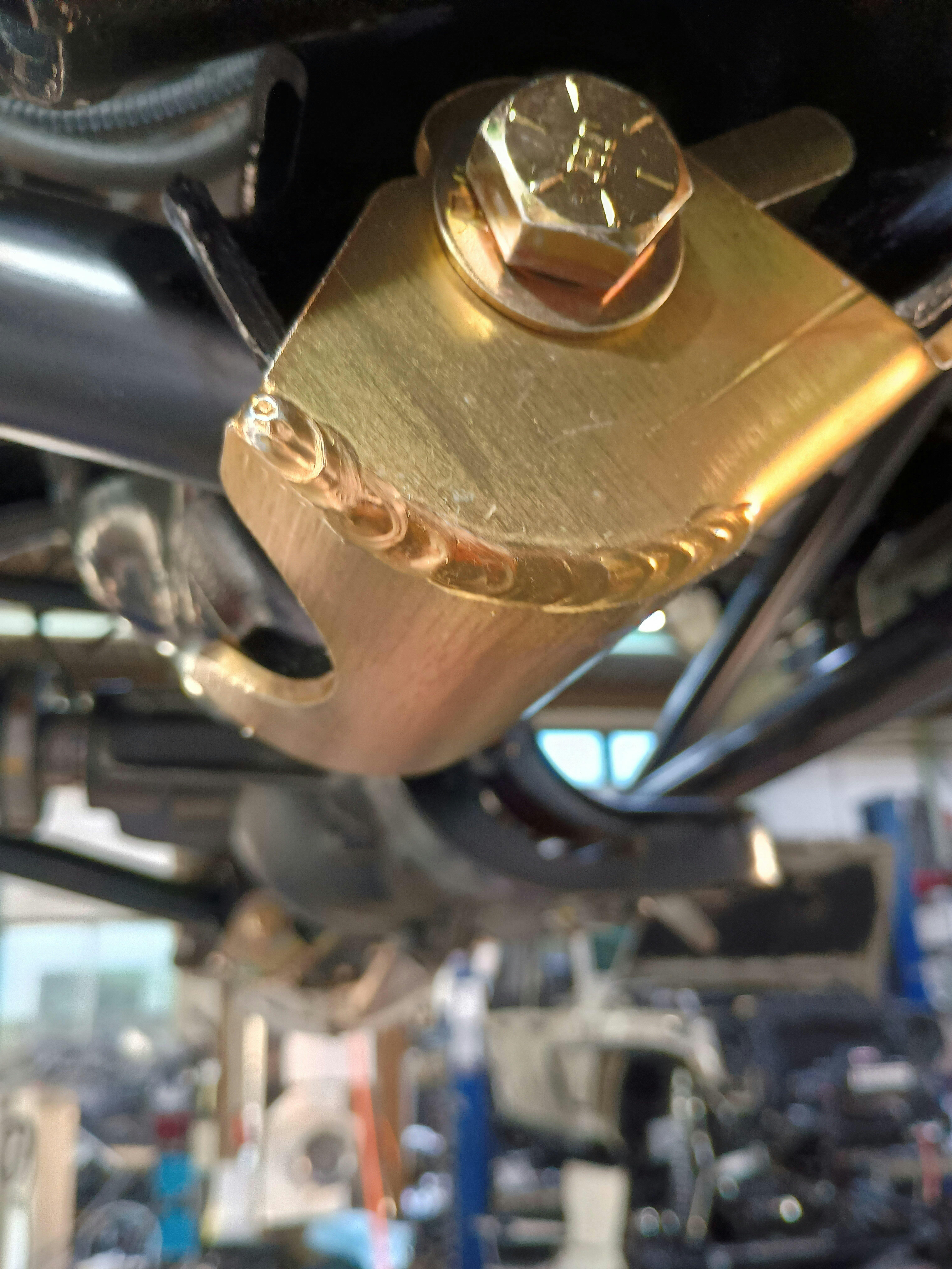 このスキッドプレートはロアコントロールアームのブラケットを保護しながら、岩に乗った時に滑らかにスライドさせてくれる動きをしてくれます。