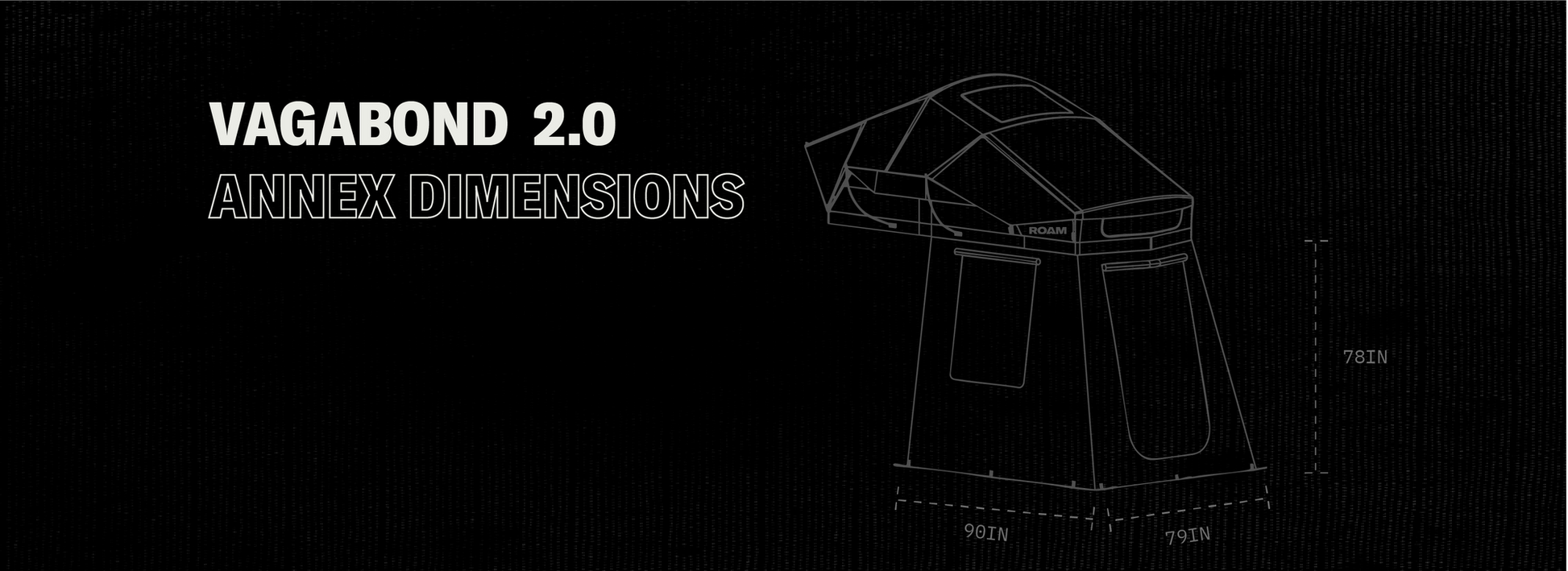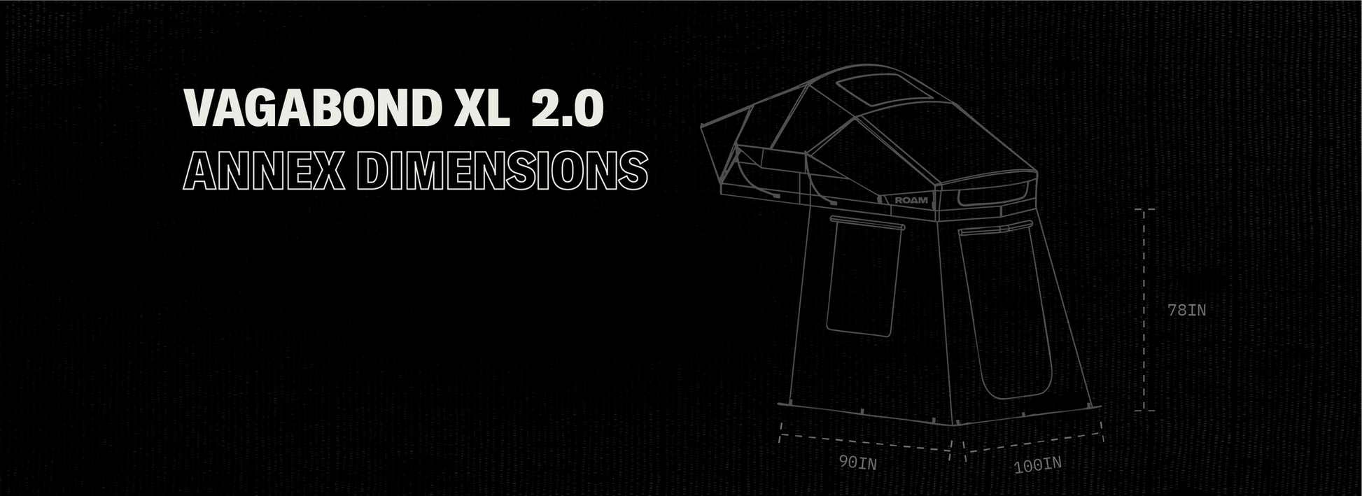 ROAM Vagabond 2.0 Annex は、Vagabond 2.0 ルーフトップテントのポーチ部分に取り付けることで、テント下に広々とした地上スペースを追加できる拡張ルームです。