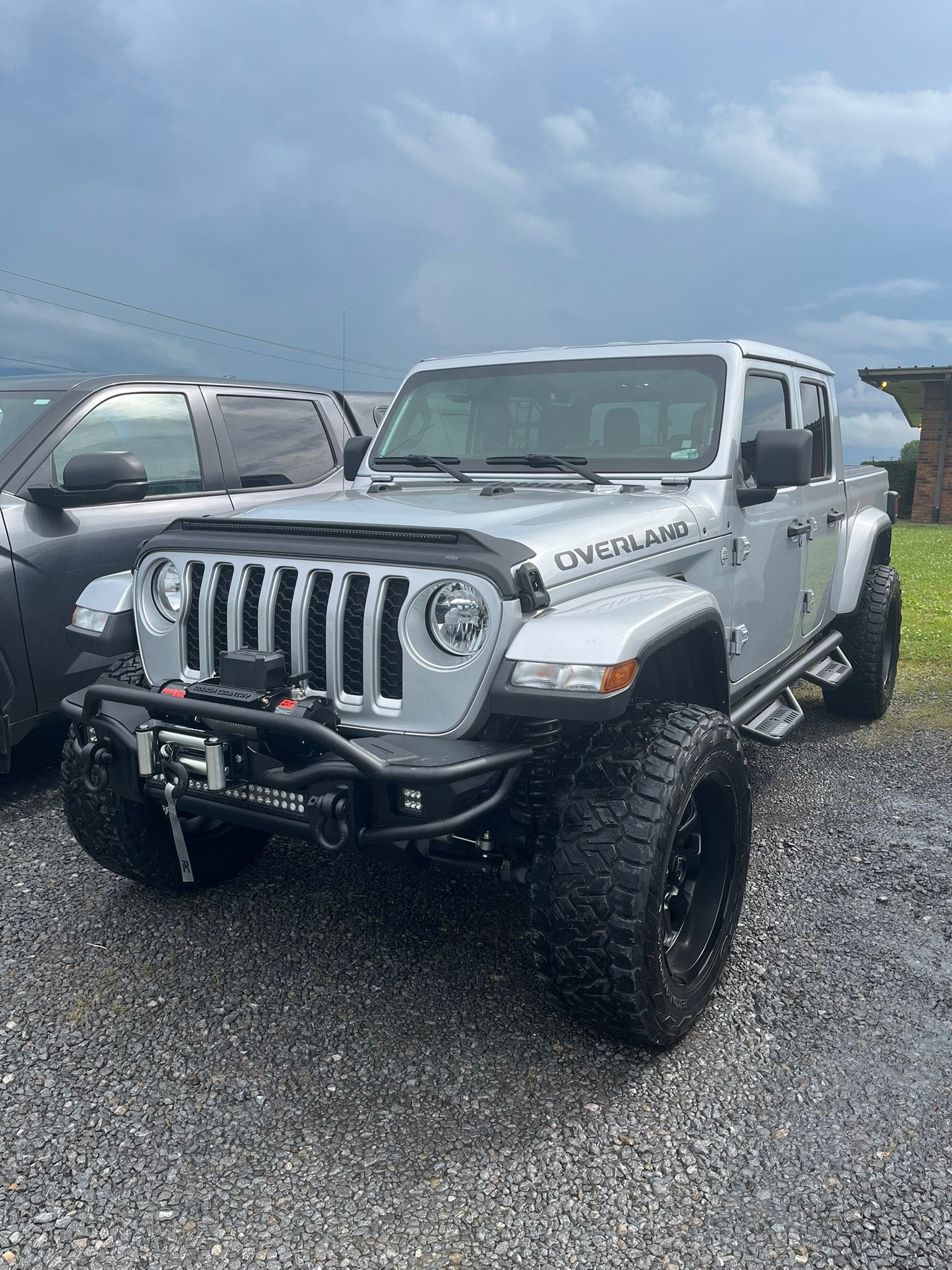 このバンパーには、モジュラー式の統合フォグライトマウントが含まれており、付属のRough Country 2インチLEDキューブライト(2,800ルーメン、36ワット)を取り付けることができます。さらに、このフロントバンパーにはRough Country 20インチデュアルローBlack-Series LEDライトバーが組み込まれており、9,600ルーメン、120ワットの前方照射光でトレイルを明るく照らします。