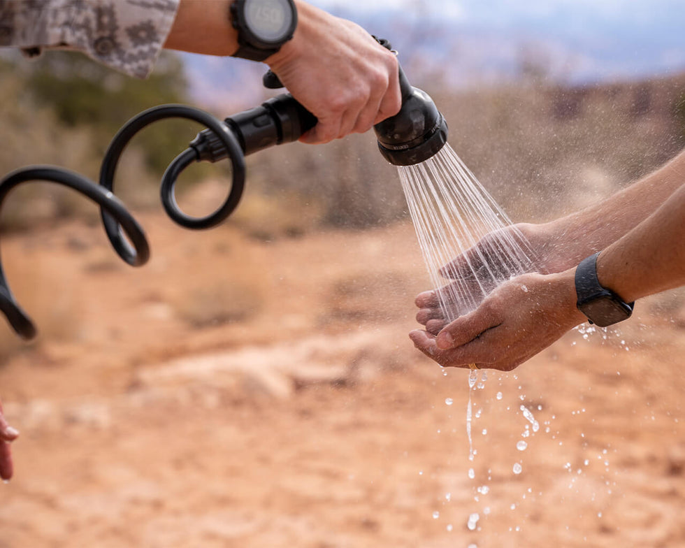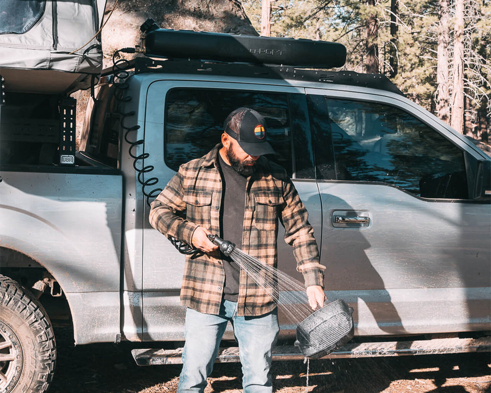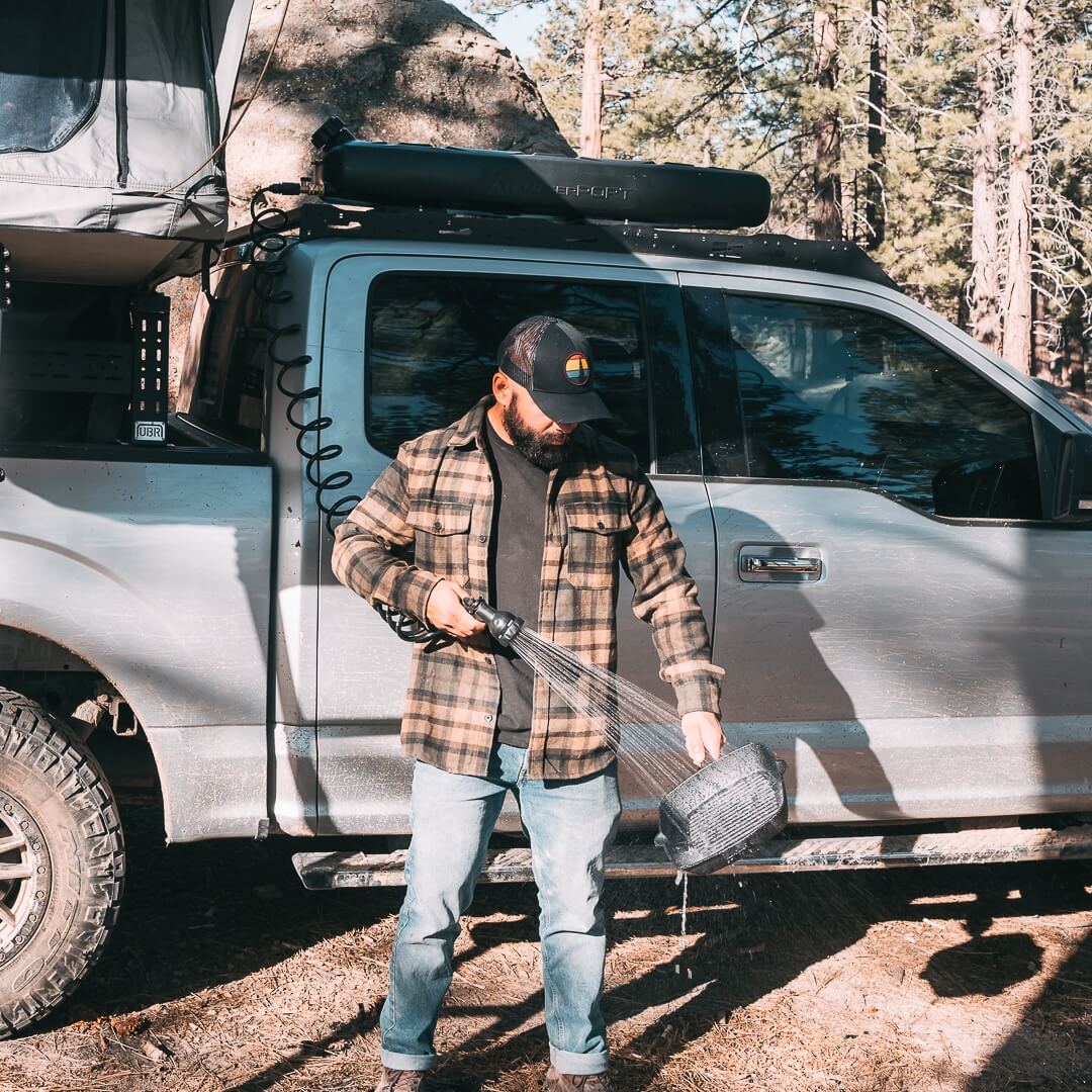 大容量 8ガロン(約30.3L) のタンクにより、キャンプでのシャワー、ギアや食器の洗浄、泥汚れの洗い流しなど、さまざまな用途に対応します。